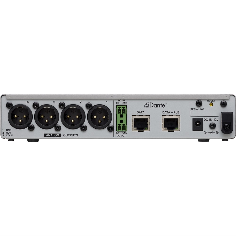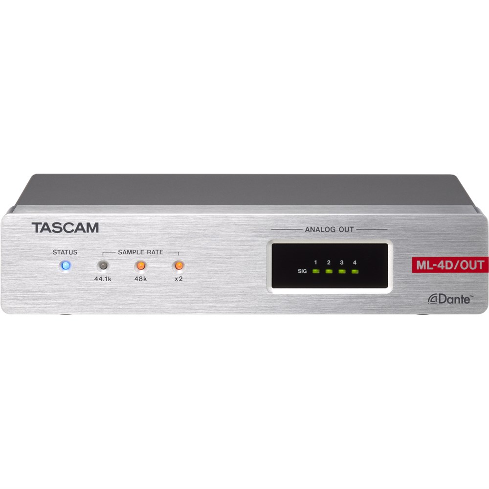 The ML-4D/OUT-X is a compact converter that converts Dante input signals into 4-channel line output signals. With half the size of a standard 1U rack, the ML-4D/OUT-X is suitable for different Dante systems as an exquisite analog output unit. The built-in DSP mixer enables small scale systems to fully perform with a variety of input/output models the TASCAM Dante Compact Processor Series offers. ML-4D/OUT-X supports up to 96kHz/24bit and uses XLR connectors for analog line output.
