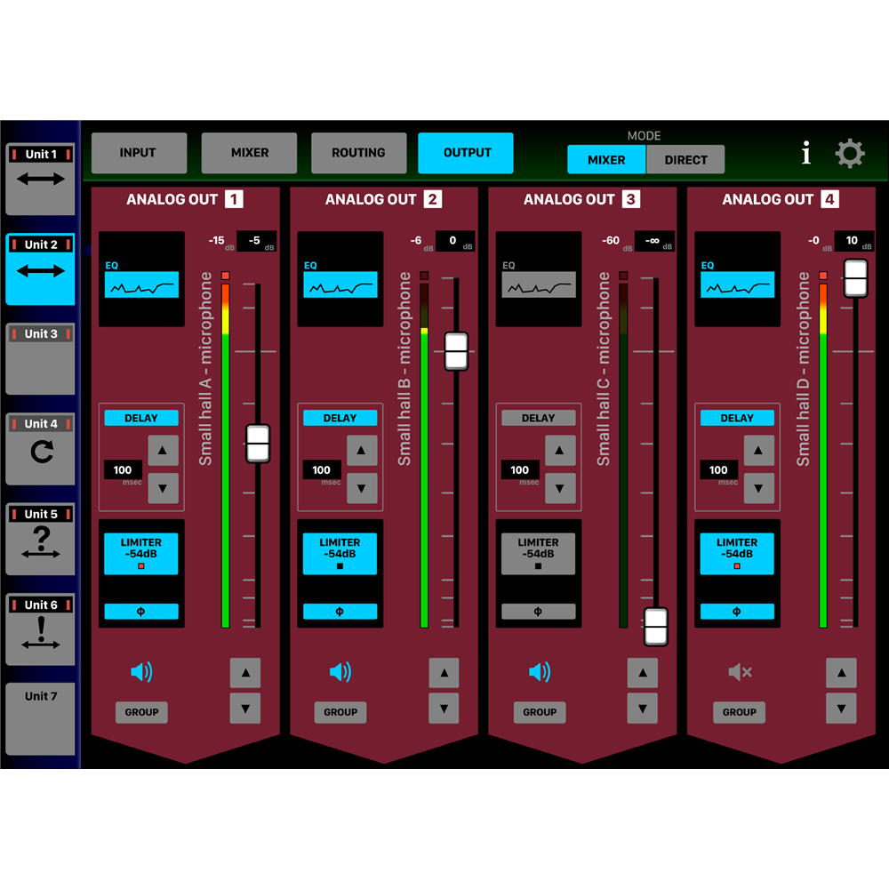 Flexible routing allows users to choose the output zone of 4 Dante inputs or the built-in matrix mixer as 4 line output and/or 4 Dante output. The ML-4D/OUT-X can be also used a as a simple line output unit by bypassing the matrix mixer.