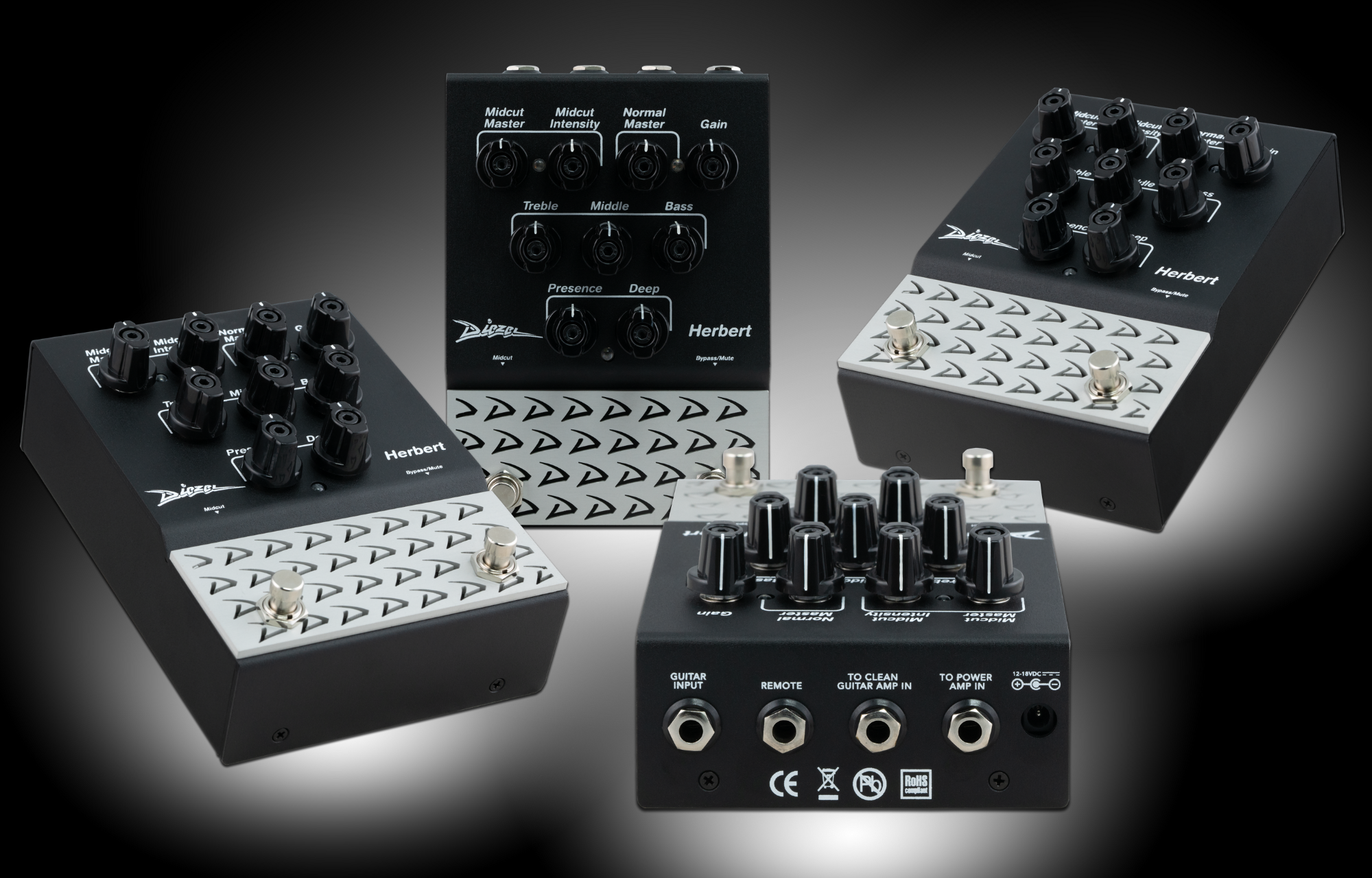 Diezel Herbert All Analog 2 channel pedal based on legendary Herbert Amp The Diezel Herbert Pedal captures the power and signature roar of the 180-watt Herbert amp in a compact, pedalboard-friendly format. Delivering searing gain, tight low end, and a finely tuned midrange, it faithfully replicates the amp’s preamp section with wide-ranging EQ, foot-switchable Midcut, and Presence and Deep controls. Designed for versatility, it features a dedicated output for running directly into a power amp, effectively turning it into a full-fledged preamp. Whether you prefer using it as an overdrive into a clean amp or as the heart of your rig via a series effects loop or power amp, the Herbert Pedal offers massive Diezel tone in any setup—ideal for players needing flexibility without sacrificing sonic impact.