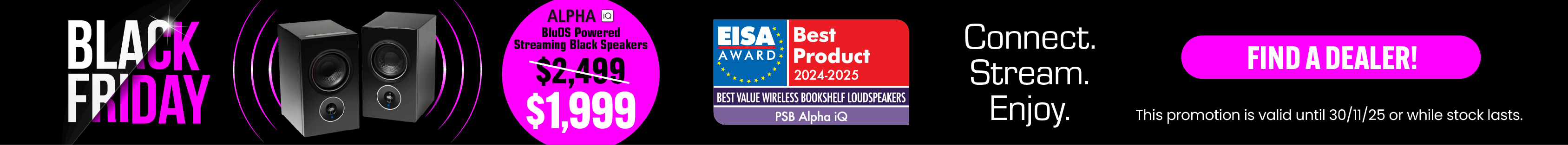 award-Winning Excellence PSB SPEAKER ALPHA IQ The PSB Speaker Alpha iQ has been awarded the 2023 Sound+Image Wireless Speakers of the Year in the AU$2,500 category. These compact yet powerful active bookshelf speakers feature built-in amplification and the BluOS platform, enabling high-resolution wireless streaming and multi-room audio capabilities. With a sleek design and versatile connectivity options—including HDMI eARC and a phono input—the Alpha iQ delivers exceptional sound quality and flexibility for modern audio setups.