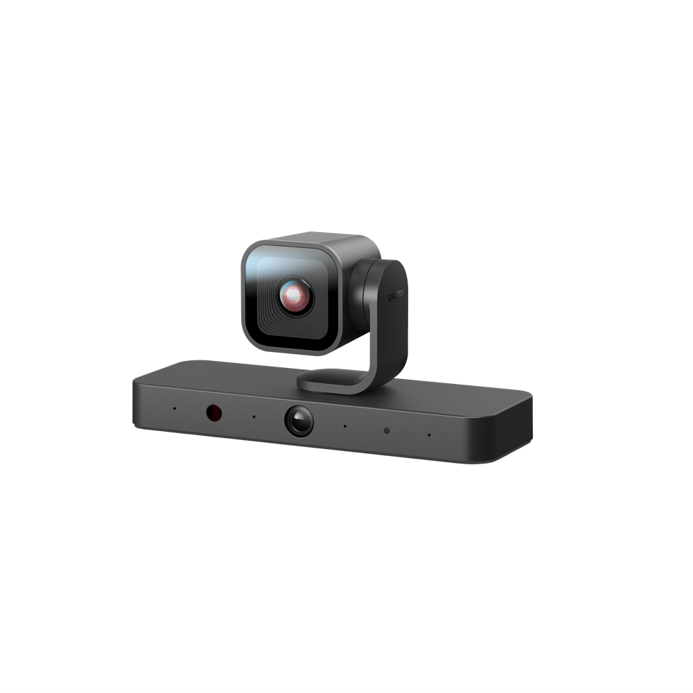 Built-in dual-lens with a 4K PTZ camera with DFOV 110° to capture every detail of participants in meeting room and a DFOV 120° panoramic camera to detect participants in real-time.