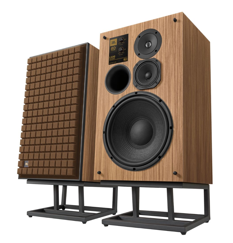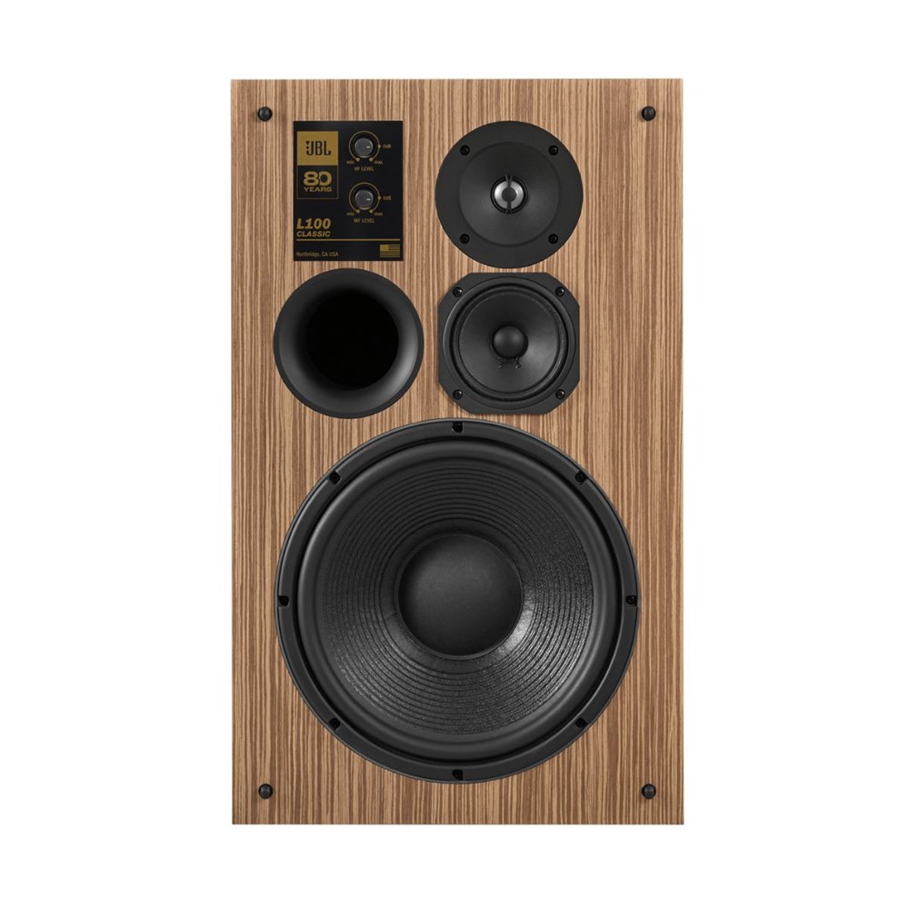 This Limited-Edition JBL L100 Classic loudspeaker package commemorates JBL's 80 years of excellence in audio. The L100 Classic 80 showcases a stunning oak wood veneer enclosure, paired with a brown Quadrex foam grille that features a gold and black JBL logo, all framed in sleek black satin wood. Each speaker is adorned with anniversary edition badges on both the front and back, including a unique numbered plaque signed by principal system engineer Chris Hagen, indicating its place in the limited production run. Sold as a matched pair, the L100 Classic 80 comes with a set of JS-150 floor stands and is delivered in a specially designed wooden crate. With only 800 pairs available globally, this edition is truly a collector's item.