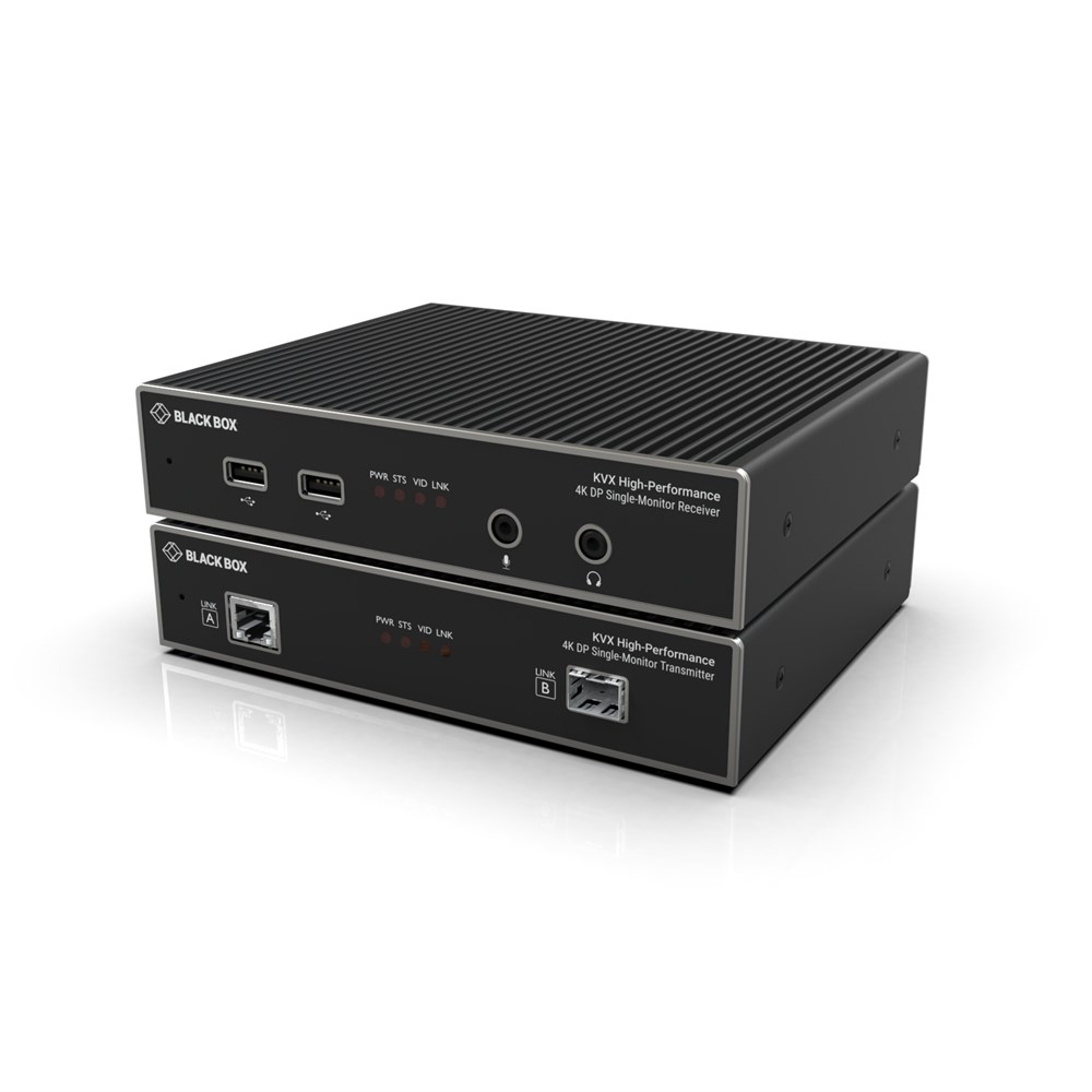 True Plug and play High-Performance point-to-point KVM extension. Using DisplayPort 1.2 KVXHP-100 supports single monitor setups with up to 4096x2160 at 60Hz using 8 bits per color, 4:4:4 chroma sampling, and USB HID - all transmitted over a single cable. Whether your requirements are CATx or fiber, KVXHP is equipped to handle both interfaces providing a single solution for all use cases.