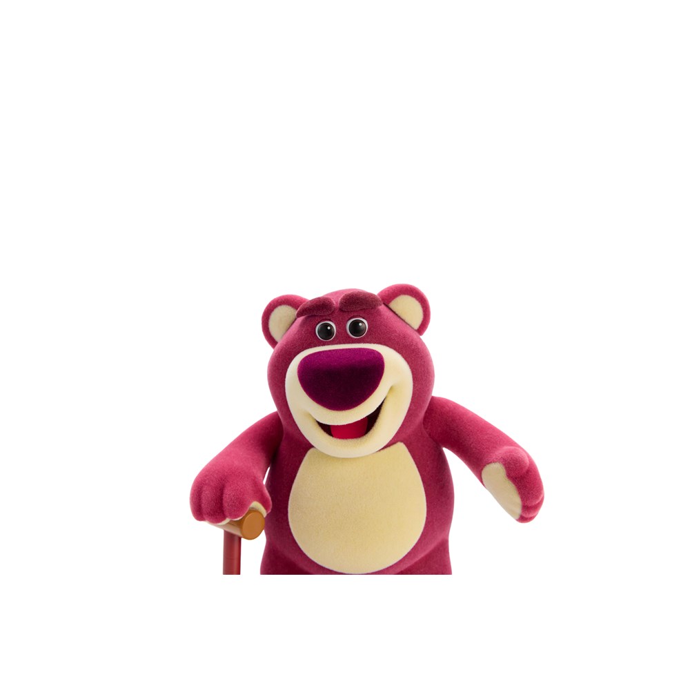 Crafted with a soft flocked exterior and infused with his signature strawberry scent, Lotso feels and smells just like the beloved character. He moves, and speaks classic phrases such as "Well, hello there. I thought I heard new voices " and "You got a lot to look forward to, folks. The little ones love new toys."