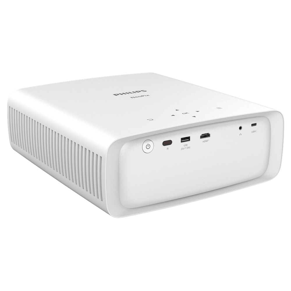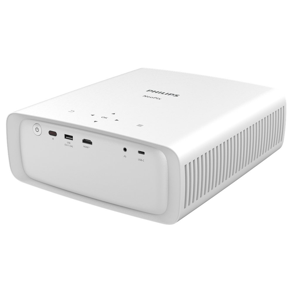 Compact, silent and designed to produce bright and colourful images in a dark room, the NeoPix 550 Smart boasts a 100-inch wide True Full HD 1080p resolution. Thanks to Android with LuminOS, your favourite content is always at your fingertips, with Netflix, Prime, Hulu, Disney+ and more. Keystone and 4 corner correction help eliminate crooked, distorted images for a perfectly proportioned picture even if the device is not straight in front of the wall. Focus technology and digital zoom allow you to fine-tune pictures to your needs and place your projector at any distance.The HDMI port allows you to connect your gaming console or other devices, such as laptops, smartphones, or DVD players. The powerful audio system offers sensational sound for a total immersive movie experience. Youcan also seamlessly pair with Bluetooth speakers or headphones!