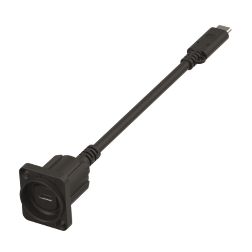 Neutrik USB Type C 5G / 100W (f) (m) D-shape fly-lead 20 cm chassis connector