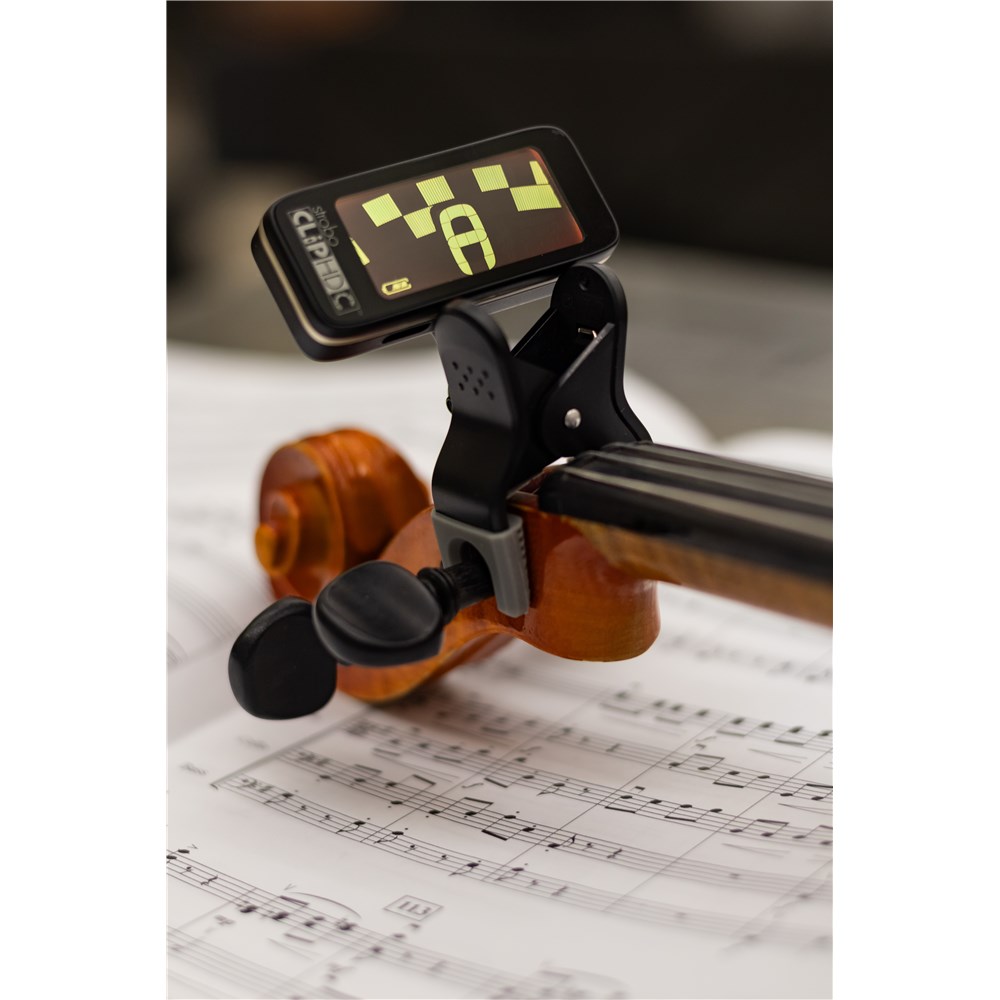 The StroboClip HDC-V features a high-definition, color backlight display, rechargeable battery and over 65 Sweetened Tunings. With tuning accuracy of 0.1 cents, the StroboClip HDC-V is the ultimate clip-on tuning solution for stringed instruments.