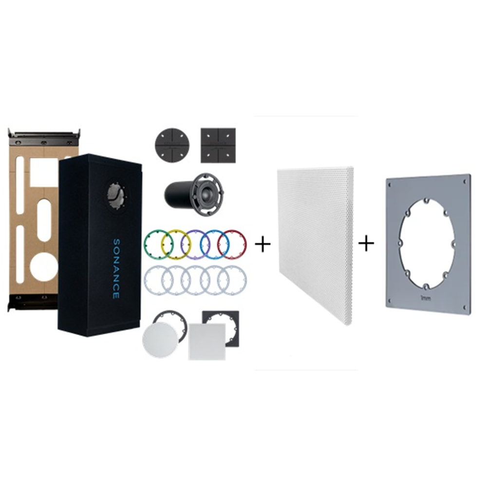 Sonance SA4-66 Complete Speaker Kit, featuring a micro trim grille, delivers impressive audio performance from a compact 4" opening. Equipped with a 6.5" woofer and a 2" aluminum wide-band module in a rigid wood enclosure, it offers remarkable range and depth.