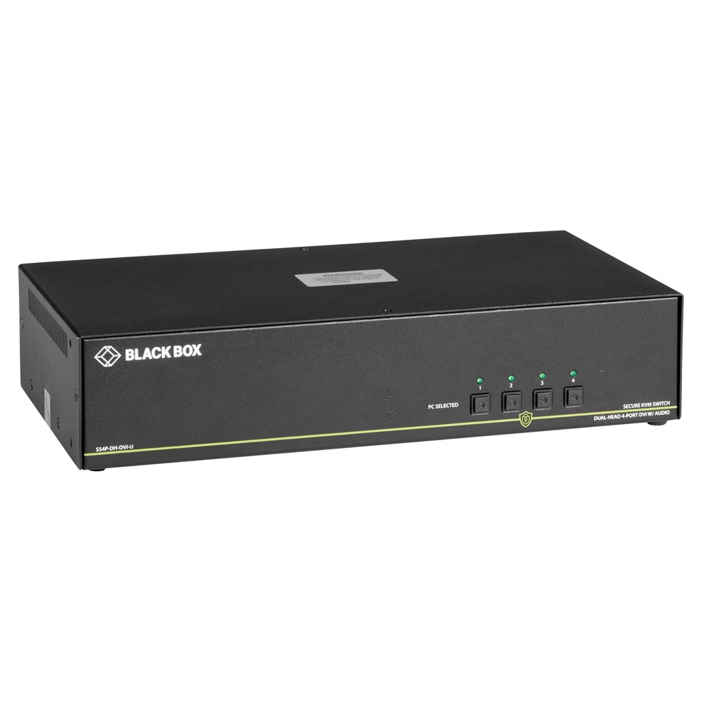 The Black Box Secure KVM Desktop Switches allow a single operator to control two or four DVI computers from a single workplace using one set of keyboard and mouse and two DVI (or VGA using adapter) monitors. They provide peace of mind knowing that each connection is secure. Options include 2-port or 4-port switches.