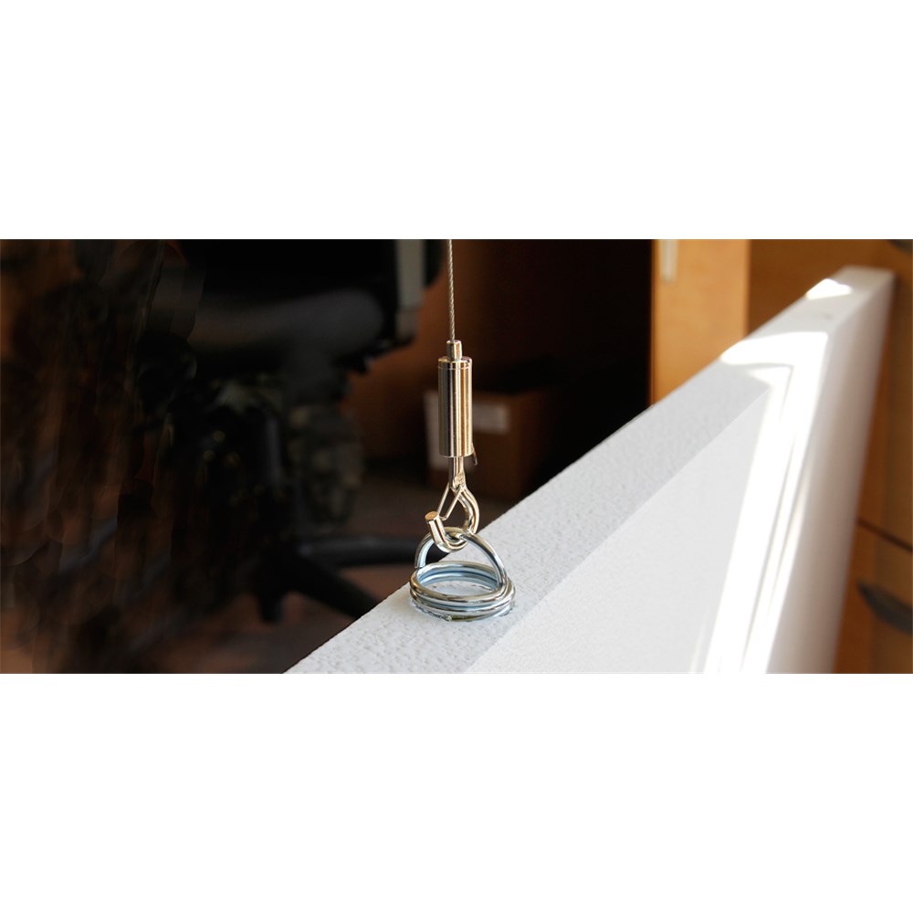 A unique adjustable cable system, designed to suspend Broadway clouds and baffles from a ceiling in conjunction with Helix, or CorkScrew anchors. Combines aircraft steel rope with a cam-style releasable hook for easy height adjustment at one end and a simple eye-sling at the other. Length: 1,930mmLoad limit: 20.4kg per anchorPack: 12 pieces