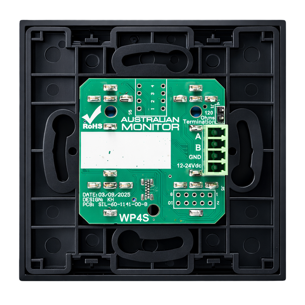 The Australian Monitor WP4S-EU is a four-button programmable wall panel designed in a European/UK standard form factor. Available in black or white.