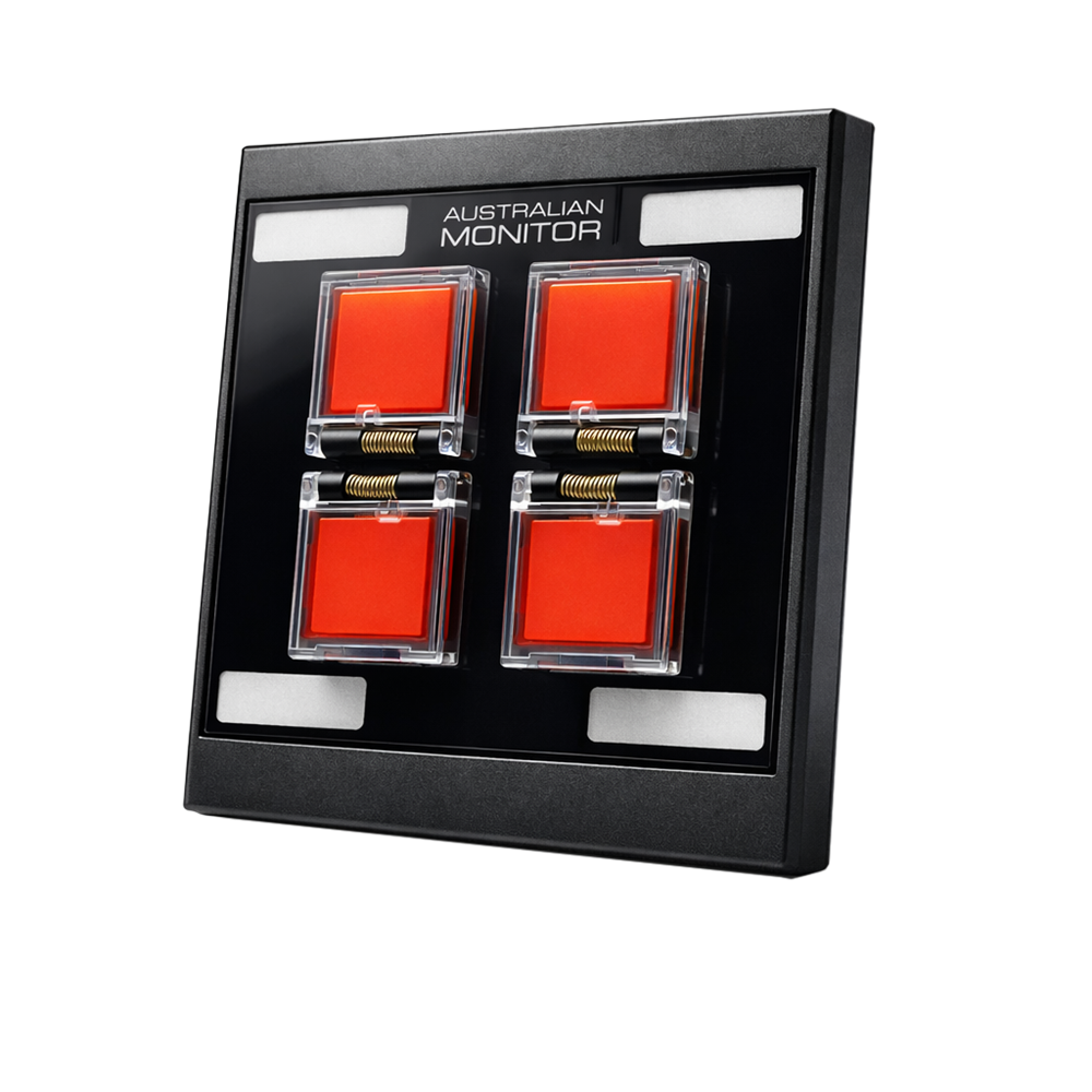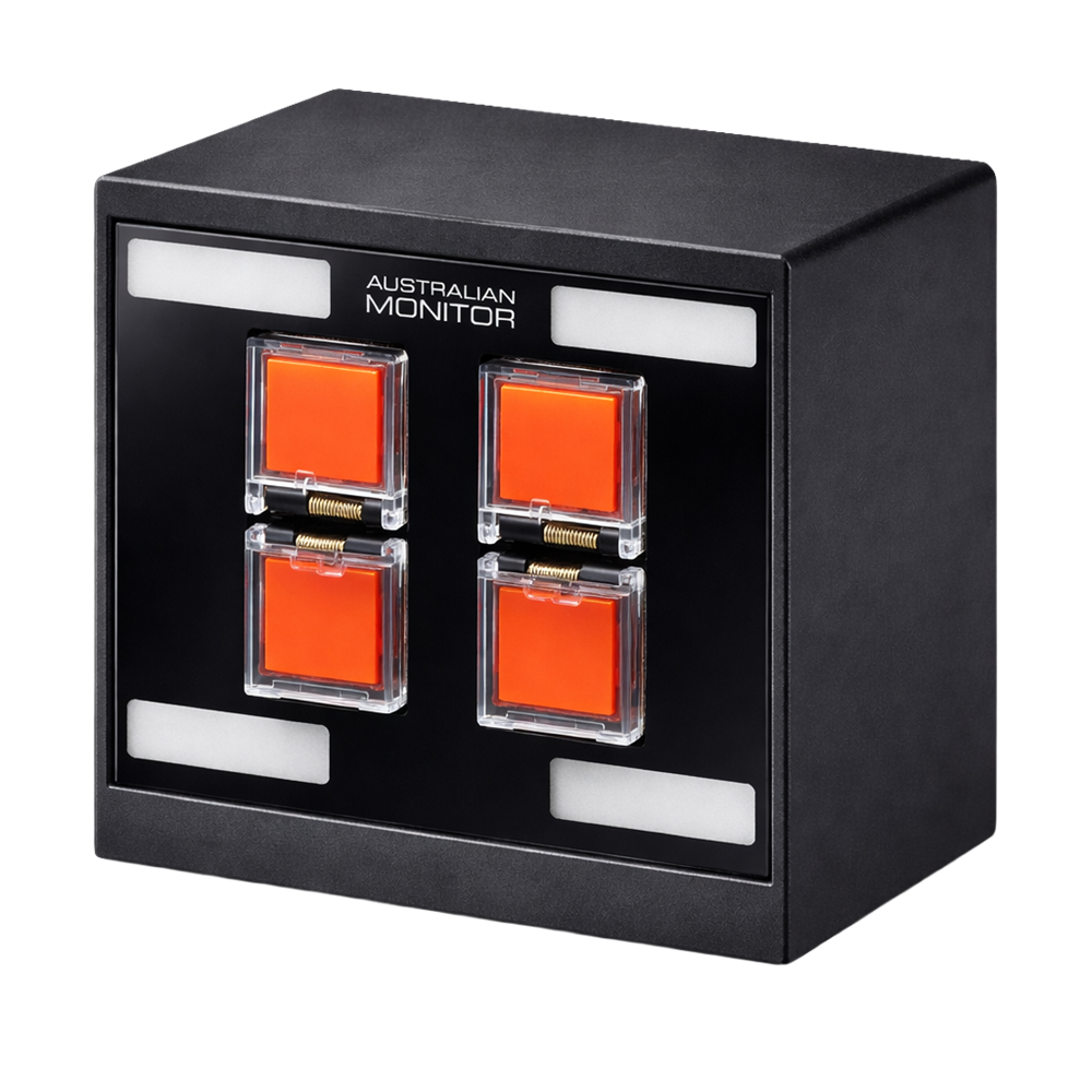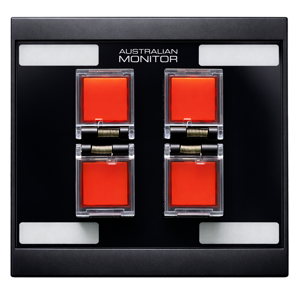 When connected to compatible Australian Monitor products equipped with accessory ports, the buttons can be programmed to trigger tones, playback messages, or activate a range of system functions.